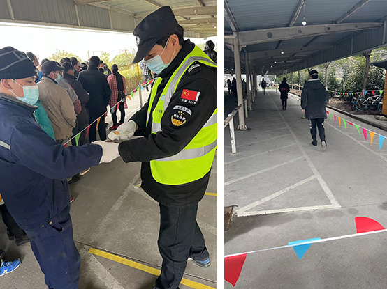 场地布置组、人员整队组、后勤保障组等分工明确,在全方位、无死角做好宣传发动的同时,将核酸检测相关注意点和必要性第一时间告知员工。为避免交叉感染,我厂设立了医护通道和采样通道,并设立了临时隔离区,同时在检测过程中实行入口、出口分离的单循环模式。