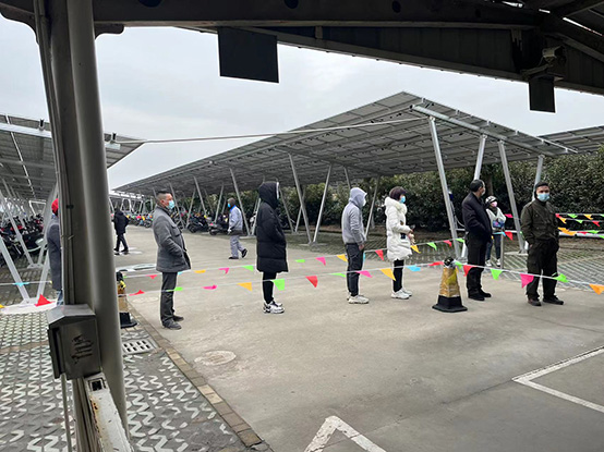 在接受完总部培训后,车轮公司第一时间组织各部室打好这场“突击战”。由综合管理部、财务部和营销部组成的检测准备团队迅速集结,严格按照应检尽检、即测即走、采样点设置通风良好、人员防控到位等原则有条不紊地推进核酸检测工作。